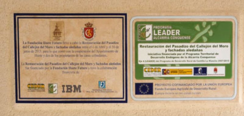 Por su parte la Fundación Huete Futuro para llevar a cabo la restauración del Pasadizo del Callejón del Moro consiguió, igualmente del programa LEADER de La Alcarria Conquense, una subvención del 40% del presupuesto de ejecución material, es decir antes de IVA, y por tanto hemos tenido que sufragar el 60% del presupuesto de ejecución material más el 21% de IVA del total del proyecto.
